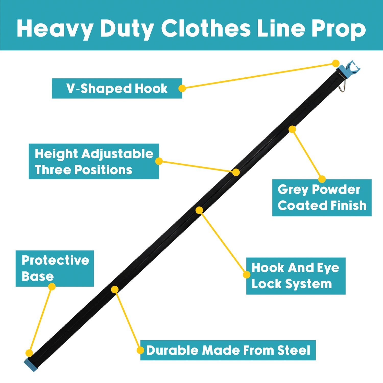 - It’s a durable prop that’s made from steel and is designed for use with line and post or retractable clothes lines.