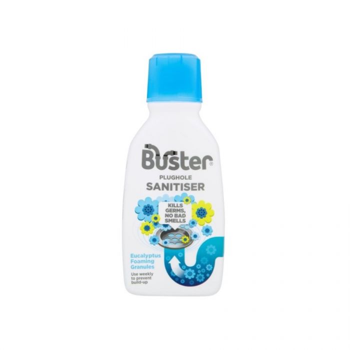 Buster Plughole Sanitiser Foaming Granules clean the plughole and surrounding area to freshen, kill germs and banish bad smells. The unique formula works in dishwashers, washing machines and waste disposals too, leaving them fresh and clean. Eucalyptus scent.