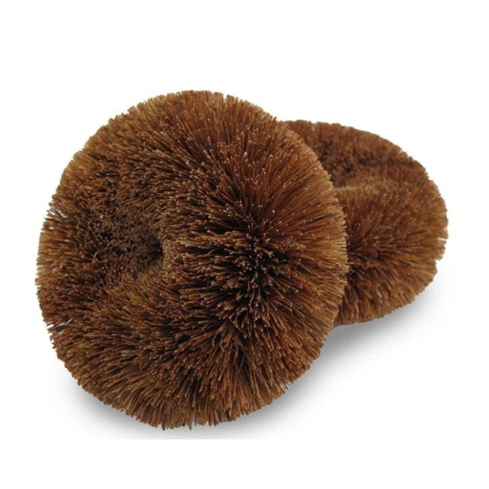 A pack of 2 EcoCoconut Scourers. An economical choice for kitchens and bathrooms. A biodegradable and highly durable multipurpose scourer that has been designed to meet style with sustainability and with all the functionalities to deliver a superior clean in your home. Made with coconut fibre. Safe on non-stick fry pans. Made ethically in Sri Lanka.
