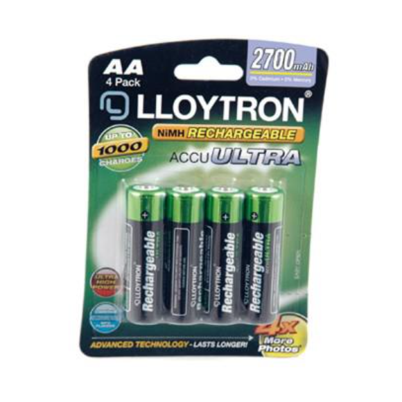 Lloytron rechargable batteries are 4x longer lasting than alkaline batteries and can be recharged up to 1000 times, making them ideal for use with todays digital products