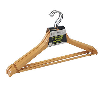 3 traditional A grade wooden wishbone hanger with trouser bar. Ideal for tops, shirts, jackets, trousers & coats.