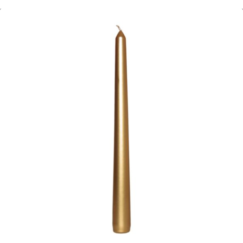 We have been proudly manufacturing our Venetian dinner candles for over 100 years. This pack of 2 high quality Venetian tapered dinner candles are coloured throughout in a stunning metallic gold. Each dinner candle gives up to 7 hours of burn time and gives a clean, smokeless and non-drip burn.