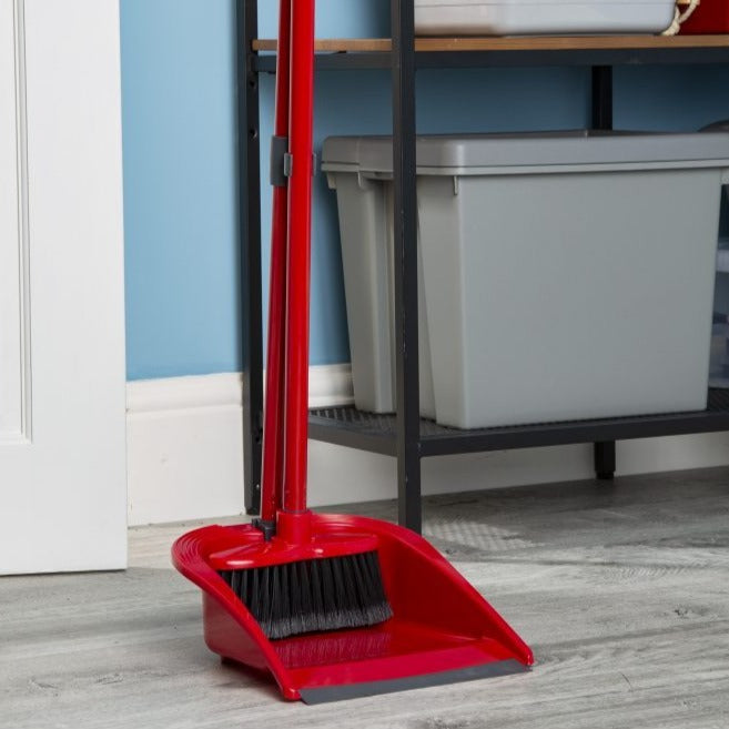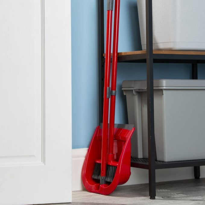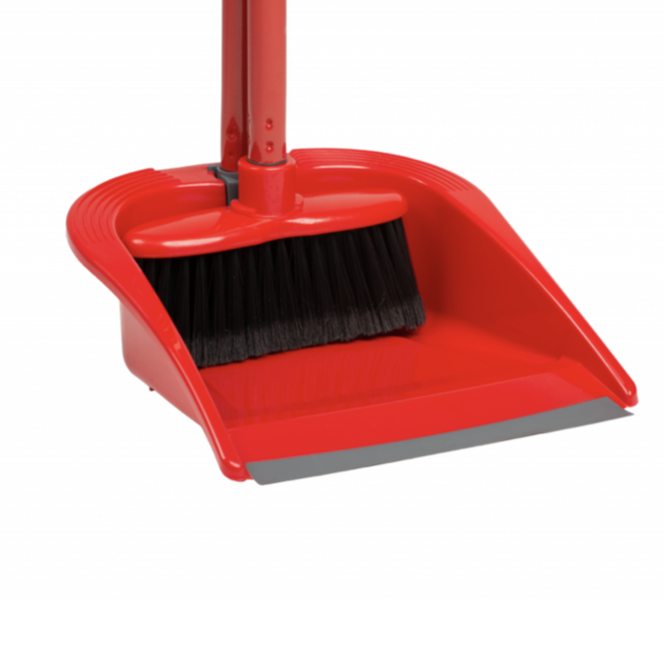 Folding dustpan for easy storage. Innovative PET bristles picks up dirt and dust. For Indoor Use.